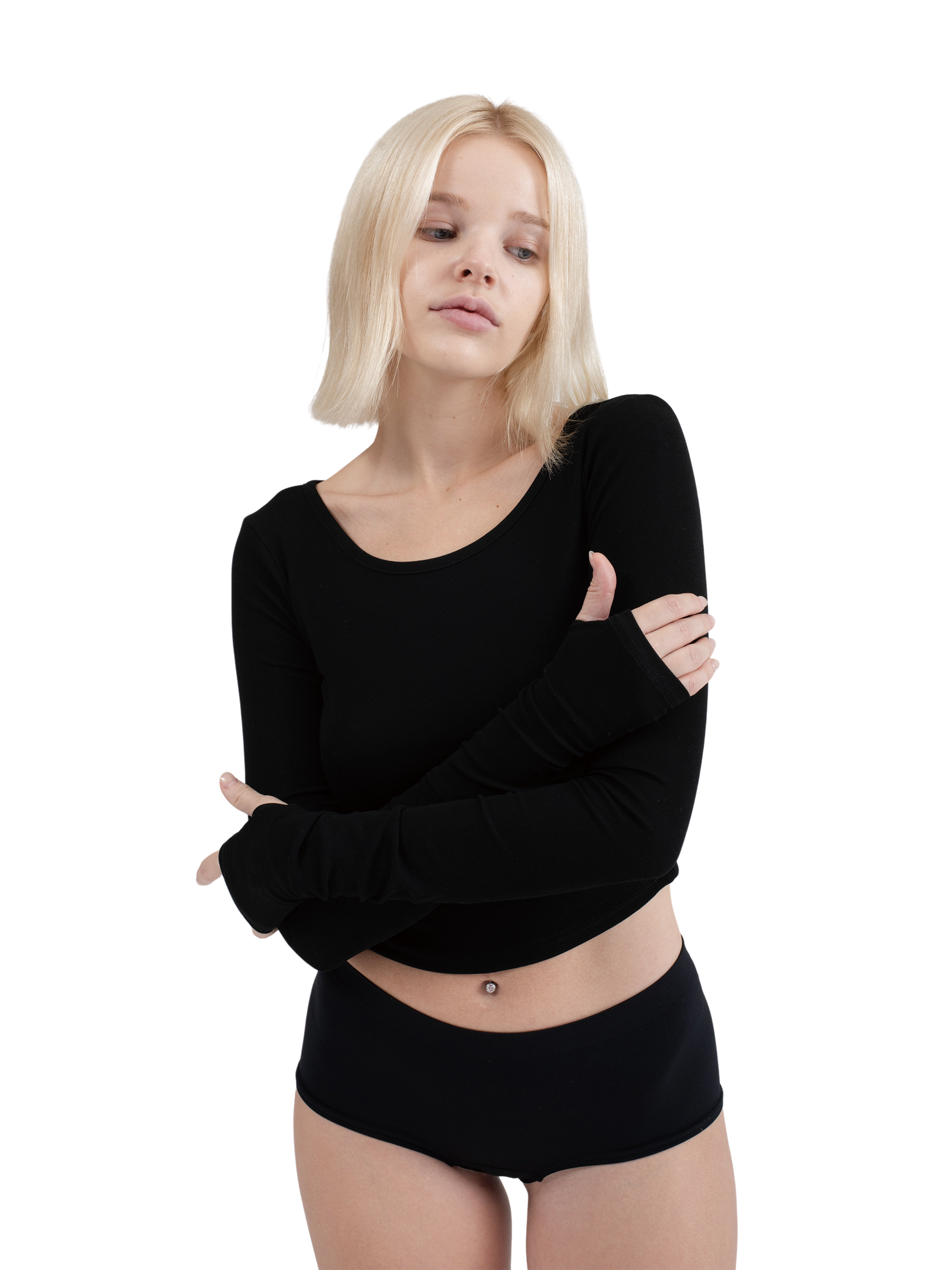 •  핑거홀 포인트 및 손등을 덮는 리얼 롱 슬리브